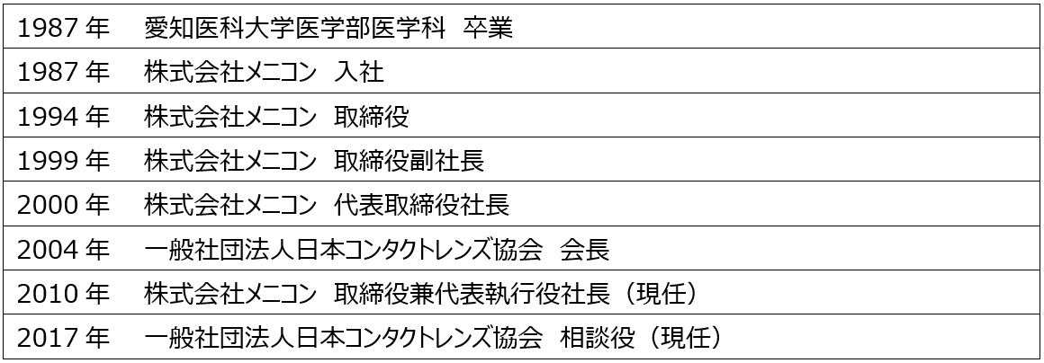 「次期社長の川浦は、30年以上の当社キャリアの中で経営企画、マーケティング、開発、生産、サプライチェーンを中心としてグローバルに幅広い業務経験を有しています。こうした豊富な業務経験に加え、若い感性と柔軟な発想により、Vision2030/中期経営計画の実現に向け、メニコンを次の成長ステージへ進めるべく、新たなチャレンジを期待しています。」