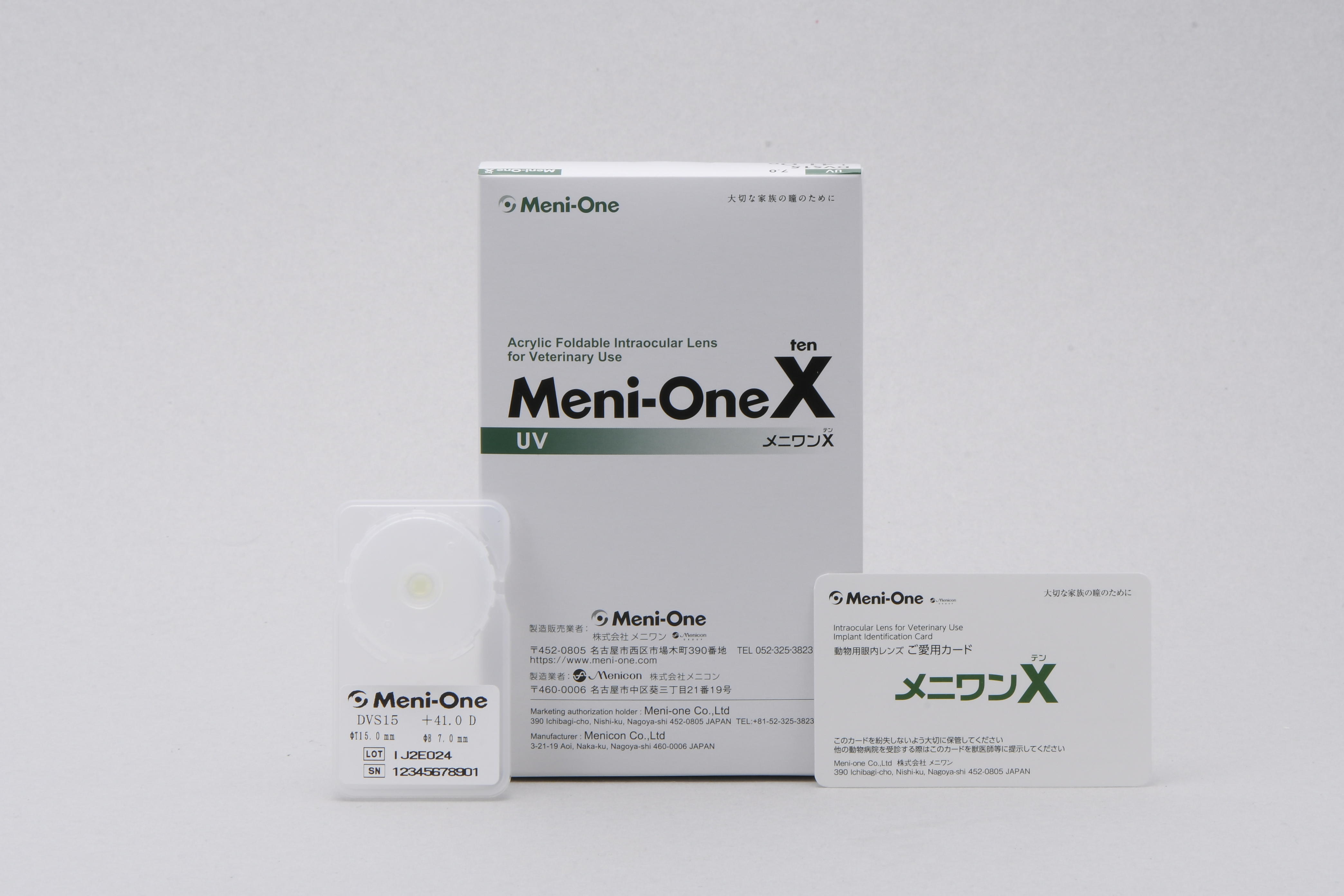 メニコンが1997 年に犬用眼内レンズ「メニわんレンズ」を開発・発売したことにはじまり、2003 年の株式会社メニワン設立以降、17 年に渡りグループ会社が協力して動物眼科医療分野に寄与してまいりました。そしてこの度、国内初となる疎水性アクリル素材のシングルピース犬用眼内レンズ「メニワンX(テン)」を発売することとなりました。