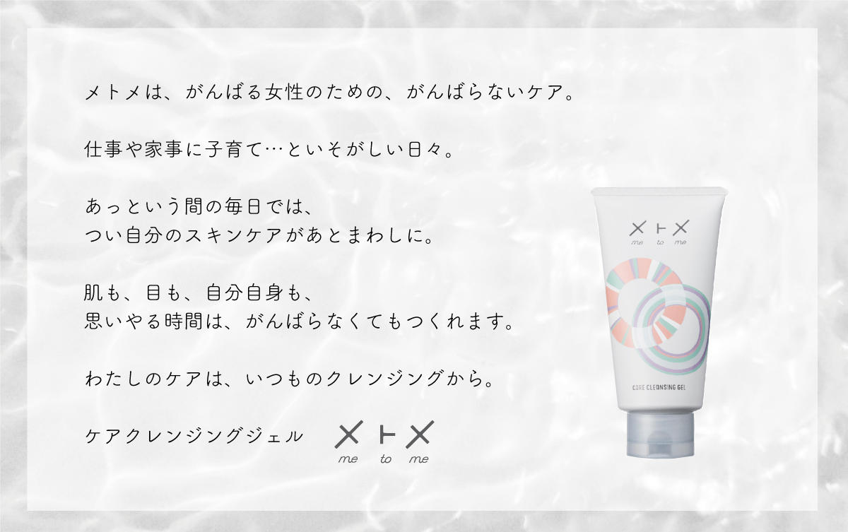 『ケアクレンジングジェル メトメ』をお手に取っていただき、毎日のクレンジングを"自分のためにケアするひととき"にしてみませんか。