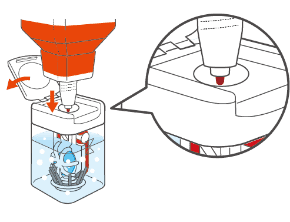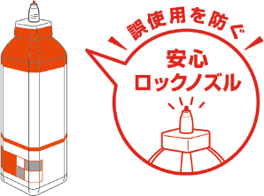 中和前のエピカ スマートクリーンは強い眼刺激の原因になります。エピカ スマートクリーンですすいでしまう誤使用をロックノズルにより防ぎます。