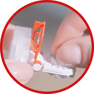 ノズルをレンズホルダーのくぼみ部分に押し当てることでエピカ スマートクリーンが注入されます。